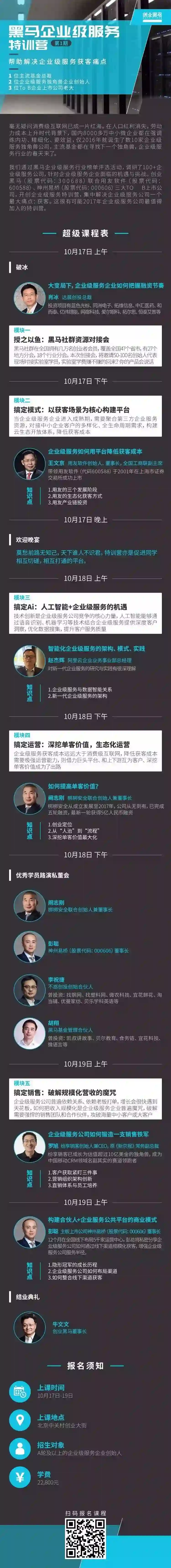 关于SaaS获客等5个企业级服务难题,10月17-19日,黑马企业级服务营,北京中关村创业大街开课。1位主流基金总裁、2位企业级服务独角兽企业创始人、3位To B企业上市公司老大,带你获客,带你飞。