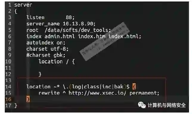 把.log.class.inc.bak类型的文件做了重定向。当然,有些例如.inc不能完全过滤,这些都需要与运维以及开发讨论一下。