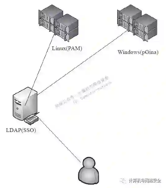 LDAP的方案可以使用LDAP服务器作为登录的SSO,统一托管所有的服务器账号,在服务器端对于Linux系统只要修改PAM(Pluggable Authentication Modules?),Windows平台则推荐pGina(pGina是一个开源插件,作为原系统凭证提供者GINA的替代品,实现用户认证和访问管理),使登录认证重定向到LDAP服务器做统一认证。