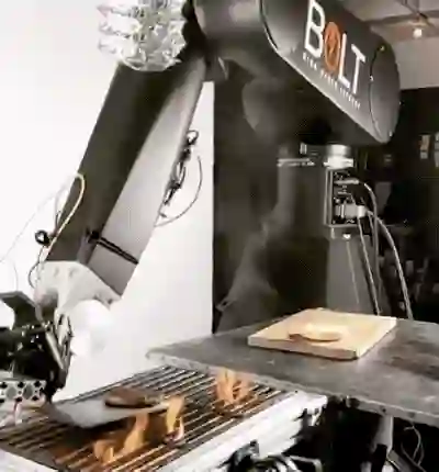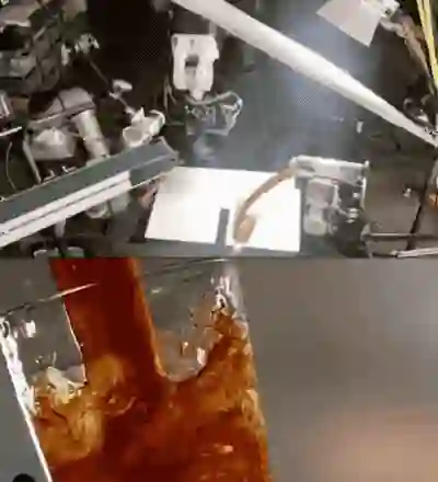 Giralt 拍摄过程中另一个得力助手就是这个机器人。他说,没有这个机器人,是不可能拍出那些效果的。Giralt 采用的是高速运动控制机器人,设定好之后,它就可以不断重复非常精确的动作。有了它,摄像机才能精准地追踪食材的运动,不会错过任何令人口水直流的角度。