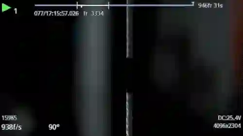 在这个试验里,你可以看到这个机器人的拍摄速度有多快,它达到了938 每秒传输帧数。
