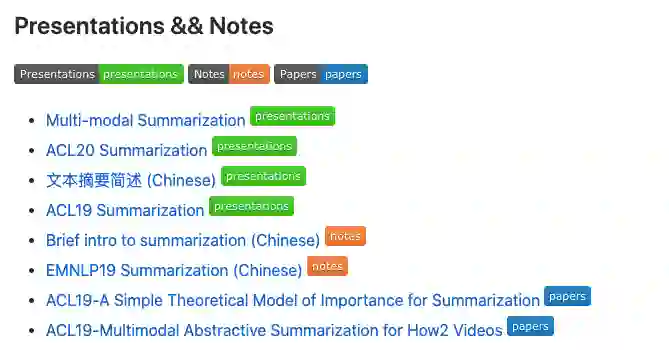除论文信息之外,该仓库还包括了文本生成组摘要论文笔记与讲解PPT,可以帮助初学者快速了解与入门该任务。