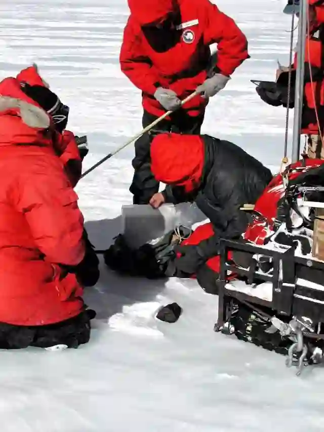 图为ANSMET的探险队员在南极发现一块陨石并准备回收,图片来自H. Raab。