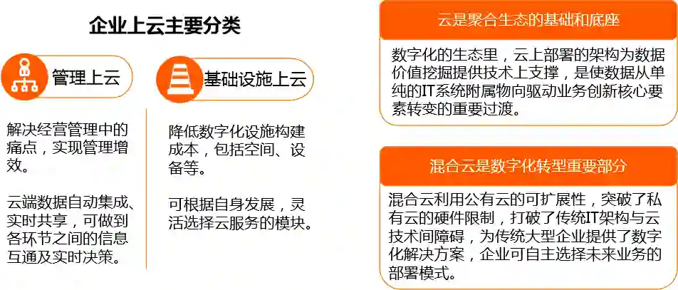 企业上云,指将企业的基础设施、管理及业务部署到云端,便捷地获取云服务商提供的计算、存储、数据和安全等能力。云服务具有资源共享、集约高效、弹性可扩展、高动态性能保障等优点。