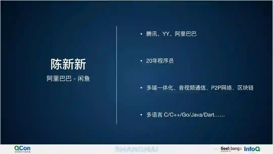 陈新新,阿里巴巴闲鱼架构技术专家,在分布式网络框架、音视频技术方面、多端一体化编程有丰富的开发实践经验和个人见解,目前专注于前后端统一编程、提高研发效率。