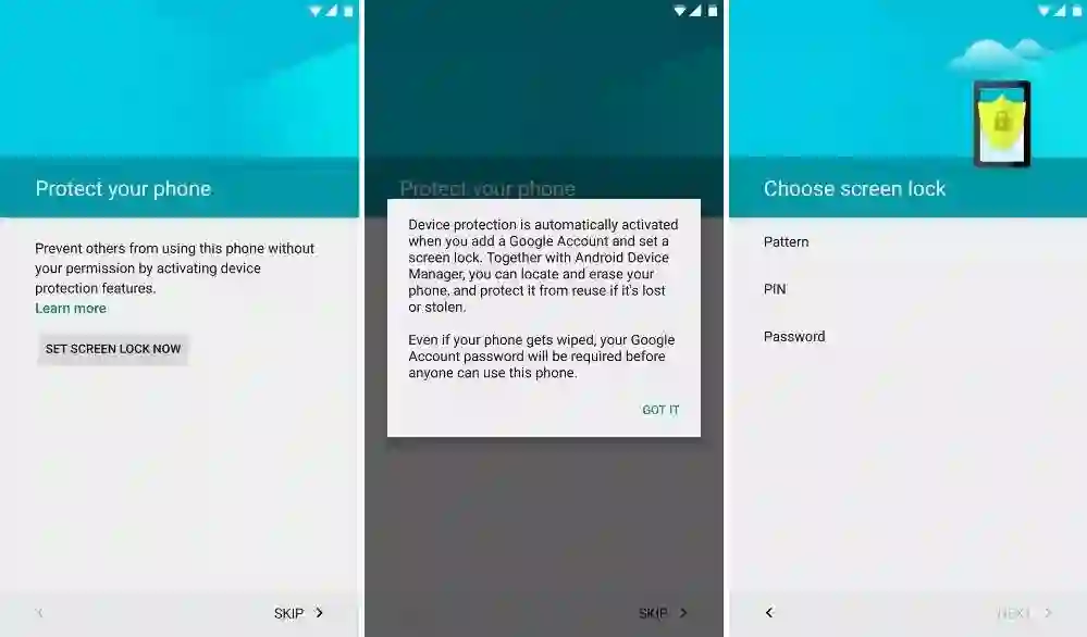 设备保护是唯一的新增界面,采用的是在开机设置显示新警告的形式。这个特性在设备被偷了之后“保护你的设备不被再次利用”。一旦设置了锁屏,设备保护就开始介入,并且会在擦除设备的时候被触发。如果你以机主正常的方式擦除设备——解锁手机并从设置选择“重置”——什么都不会发生。但如果你通过开发者工具擦除,设备会在下次开机设置的时候要求你“验证之前同步的谷歌账户”。