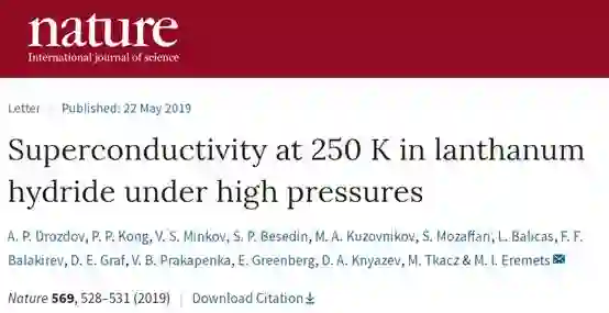现在,由马克斯·普朗克化学研究所物理学家Mikhail Eremets领导的团队,可能发现了临界超导温度能达到–23℃的高温超导体新材料:超氢化镧(lanthanum superhydride)!