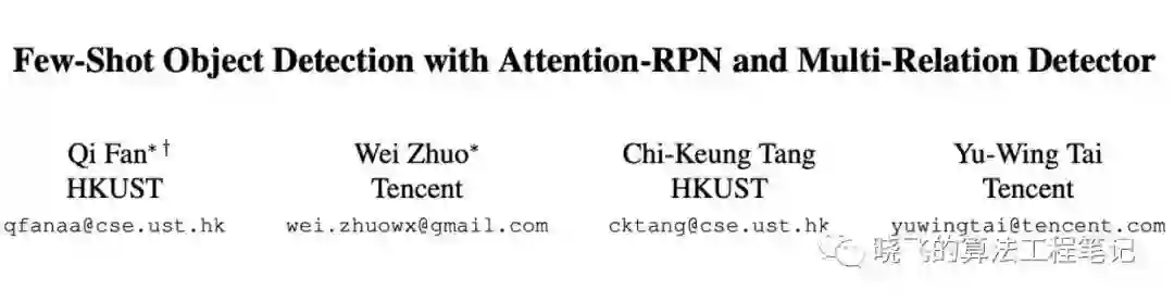 论文提出了新的少样本目标检测算法,创新点包括Attention-RPN、多关系检测器以及对比训练策略,另外还构建了包含1000类的少样本检测数据集FSOD,在FSOD上训练得到的论文模型能够直接迁移到新类别的检测中,不需要fine-tune。