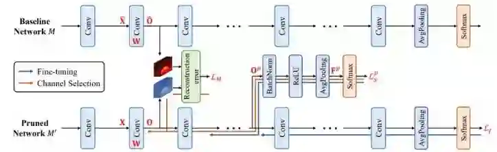 这项研究由腾讯 AI Lab、华南理工大学和阿德莱德大学合作完成,对通道剪枝方法进行了改进。通道剪枝是深度模型压缩的一个主要方法。现有的剪枝方法要么通过对通道强加稀疏约束从头训练,要么极小化预训练特征和压缩后特征之间的重构误差。这两个策略都存在不足:前者计算量大并且难以收敛,后者只关注重构误差而忽略了通道的判别能力。
