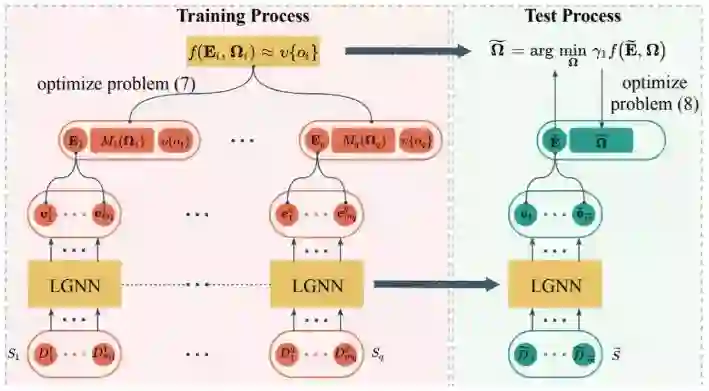 上图展示了 L2MT 的框架,该框架包含 2 个阶段。训练阶段是学习一个估计函数 f(·,·) ,以基于训练数据集和特定的多任务模型来近似相对测试误差;测试阶段则是通过最小化该相对测试误差(接近随 Ω 变化的 γ1f(E˜ , Ω))来学习任务协方差矩阵。