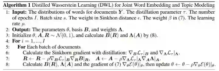 用于单词嵌入和主题建模的联合学习的蒸馏 Wasserstein 学习(DWL)方法