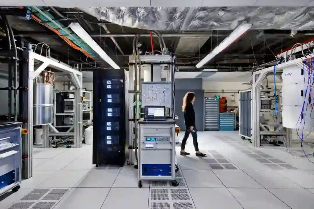 IBM将量子计算机放在大型低温容器(最右边)中,这些容器被冷却到绝对零度以上。
