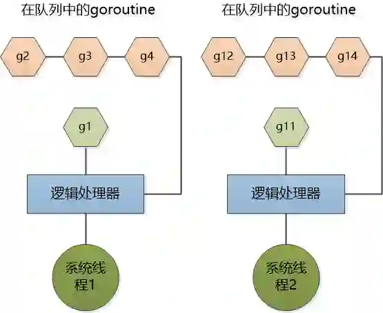 “当你创建一个goroutine,它会被加入到一个全局的运行队列当中, 然后调度器会把他们分配给某个逻辑处理器,这个逻辑处理器会被绑定到唯一的操作系统线程,在上面真正地运行goroutine,如果一个逻辑处理器有多个goroutine要运行,那也要就形成队列,让逻辑处理器来调度执行。”