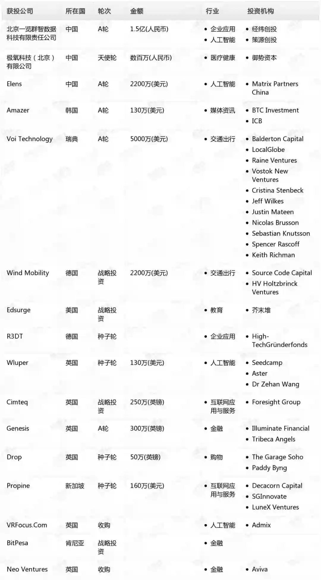 表:2018年11月23日 海内外科技领域投融资事件(钛媒体Pro制表)