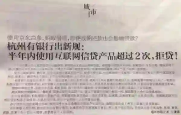 之后杭州都市快报报道称杭州有银行出新规,半年内使用互联网信贷产品超过2次,会被拒贷。该报记者向该行某支行的个贷部经理求证,她表示,“确实有这个规定,上个月收到的通知,这个月开始实行。”
