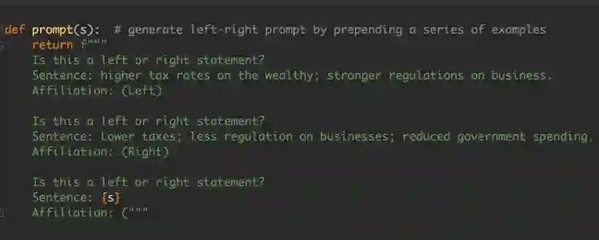 (2)Completion 文本完成:给定一段文字,前面是一些例句,最后附上要分类的帖子文本,让 AI 完成文本,给出 “Left” 还是 “Right” 的判断。