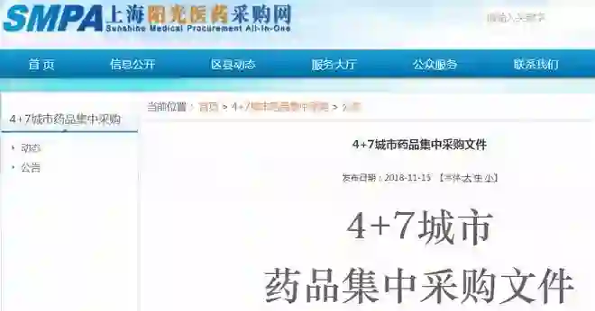 11月15日,上海阳光医药采购网发布《4+7城市药品集中采购文件》,公开了北京、天津、上海、重庆和沈阳、大连、厦门、广州、深圳、成都、西安11个试点城市(以下简称4+7城市)的药品集中采购方案。