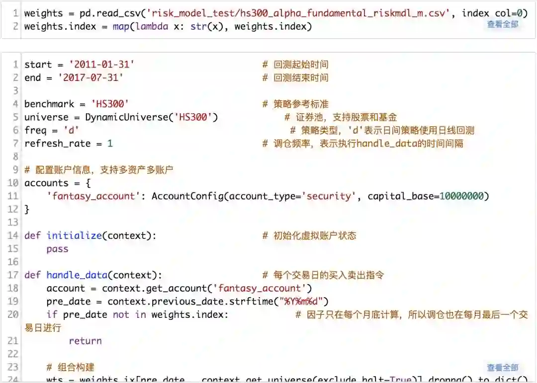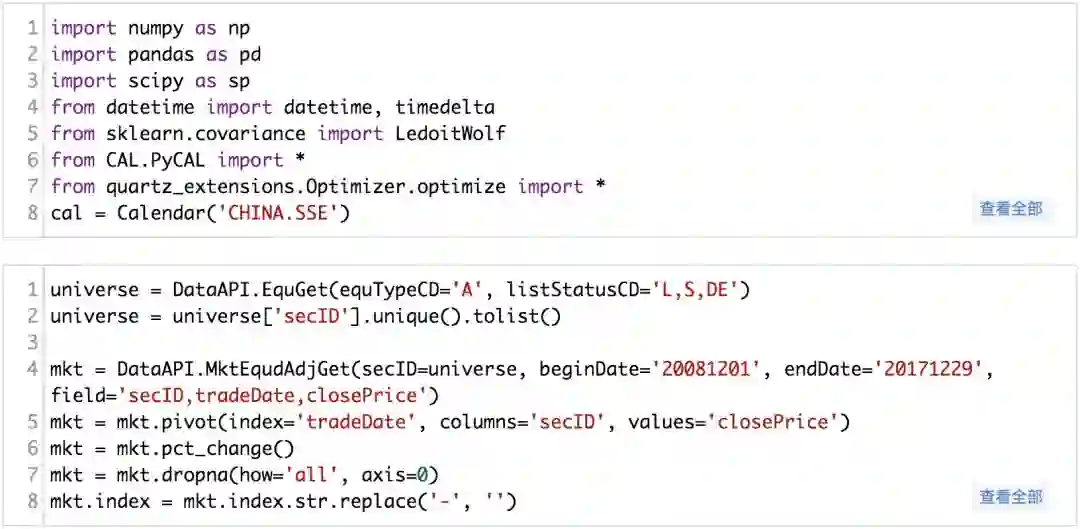 回测部分可以使用下面的框架,对于不同的股票池,只需要修改对应不同的域,不同的权重输入即可。