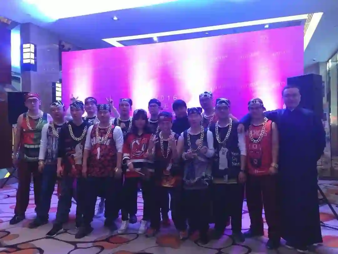 每日优鲜联合创始人兼总裁曾斌(右一)与物流部员工在公司年会中