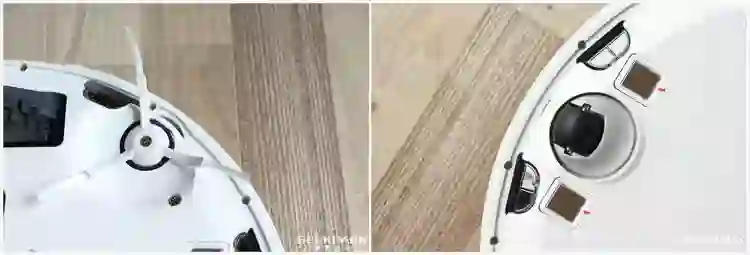 这一次的主轮悬挂系统(左),从原来的 1.5cm 提升到了 2.0cm,进一步优化了翻阅障碍的能力。而主刷部分的吸力相比前一代进一步提升,从去年 1800pa 升级到 2000pa,这也是在去年不少人的呼声之一,毕竟吸力提升能打扫的更干净,而在实际体验中,噪声比去年并没有特别明显变化。