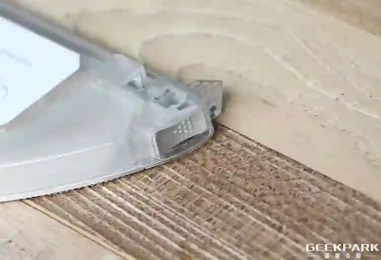 拖地工作原理和我们平常生活中的毛巾吸水类似,基于毛细原理,水箱滤芯将水输送到拖布,让拖布保持充足含水量,同时,滤芯也会过滤水中杂质,避免出水口堵住无法出水,因此才有前边扫后边拖的良好协作。值得注意的是,在体验过程中,拖布出水很均匀,即使静止不动也没有发生渗水现象。