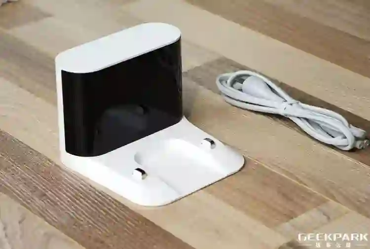 充电座部分最大的变化在尺寸,去年 230mm×109mm×129mm 的尺寸,今年变成 136.5mm×130mm×98mm,小巧很多,放在墙角也不会显得突兀。