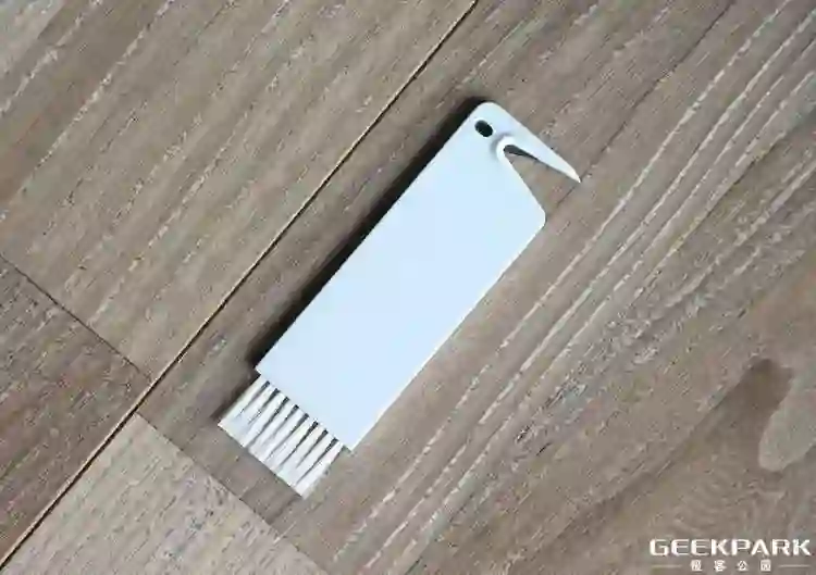 打开后盖能看到尘盒,以及 Wi-Fi 指示灯,尘盒是卡扣式设计,方便拆卸。尘盒左侧是附带的清理毛刷,更方便清洁滤网。尘盒容量方面,从去年的 0.42L 提升到 0.48L,意味着能清扫更多东西。