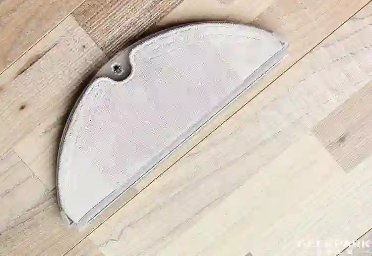 水箱在安装之前除了要加水之外,更重要的工作是安装拖布。过程也很简单,把拖布的一侧塞进指定插槽,另一侧用魔术贴的方式粘在边缘区域,安装和拆下清洁都很方便。