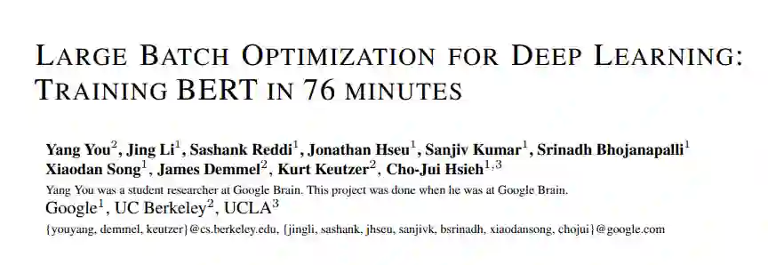 人们对于使用大批量随机优化方法来解决此问题的兴趣激增。该研究领域中最杰出的算法是LARS,它通过采用逐层自适应学习率,在几分钟内在ImageNet上训练RESNET。然而,LARS对于像BERT这样的注意力模型表现不佳,这表明其性能增益在各个任务之间并不一致。