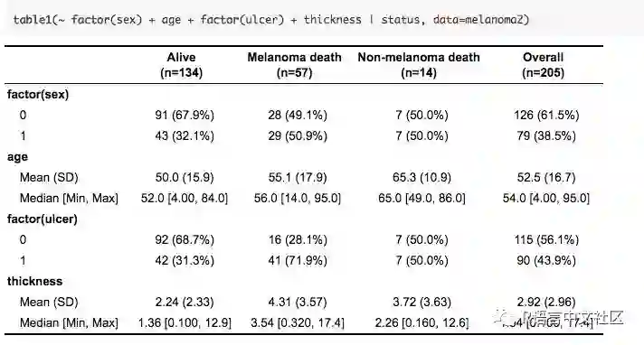 1. table1 : 提供用于创建用于描述性统计的HTML表格的功能.