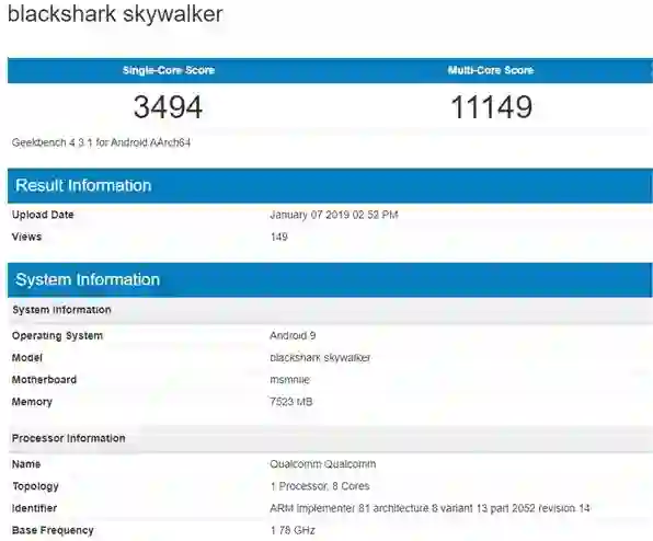 经查,在Geekbench 4跑分库中出现了两款疑似搭载骁龙855的小米系新机,其中一款代号Cepheus(仙王座),另一款是代号Skywalker的黑鲨新品。