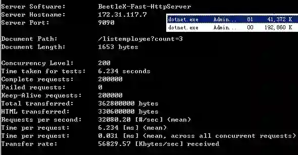 是dotNet core下基于Beetlex实现的一个高度精简化和高吞吐的HTTP API服务开源组件,它并没有完全实现HTTP SERVER的所有功能,而是只实现了在APP和WEB中提供数据服务最常用两个指令GET/SET,满足在应用实现JSON,PROTOBUF和MSGPACK等基于HTTP的数据交互功能,虽然是一个精简版本但针对SSL这方面的安全性还是支持。