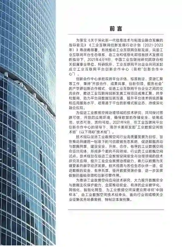 案例集自征稿启动以来,得到技术组成员单位及社会各界的积极响应,在经过稿件征集、专家评审、组织编撰等各阶段后,汇聚了涵盖工厂数字化、智慧能源、城市数字化、智慧物流等不同领域的实践探索,对建设安全、可信的工业数据空间,推动各行业数据驱动的数字化转型具有较强借鉴意义和推广价值。