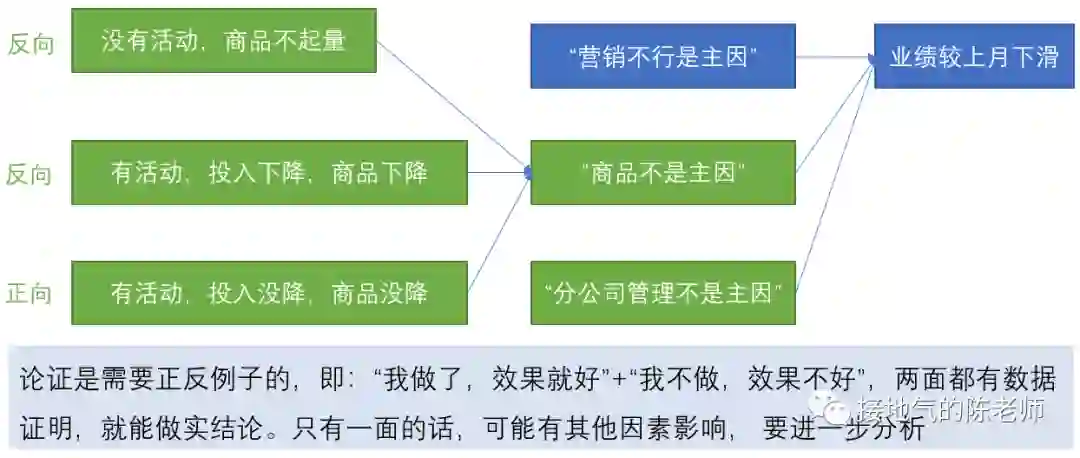 类似地,每一条假设都有证据,则可以汇总一个结论:营销力度不足,导致了业绩下滑问题。