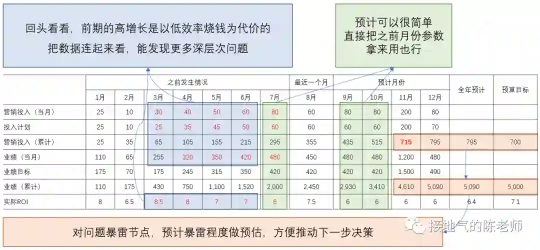 比如这里预计营销费用与业绩关系,完全可以用简单的时间序列/线性回归,给出走势即可。可以做滚动预测/业务假设预测,用公式推导(如下图)。