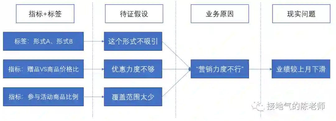 比如这里有一条假设:营销覆盖产品减少,导致业绩下降。
