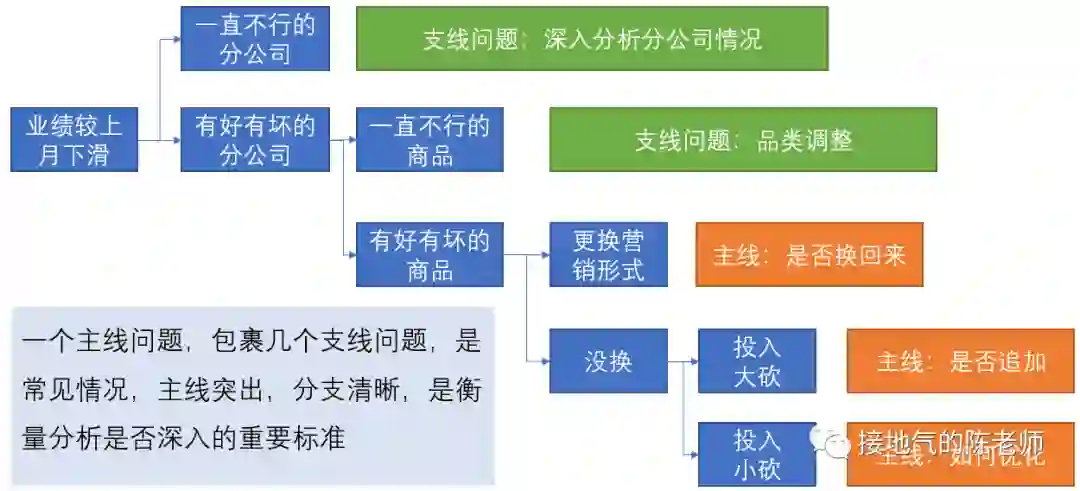 比如我们给出“营销力度不足”的结论以后,大家会自然反问:难道只有营销的问题吗?难道分公司管理没有问题吗?难道产品没有问题吗?