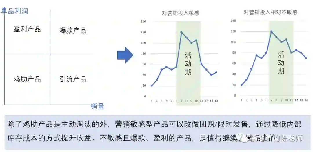 比如商品分析,可以先核算成本,再看促销敏感性(如下图):