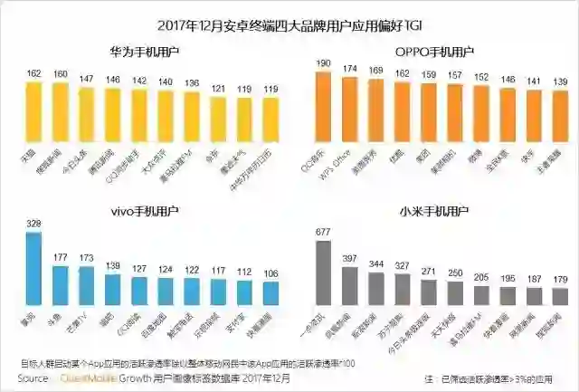 安卓四大终端品牌用户的行为偏好和应用偏好存在较大差异。