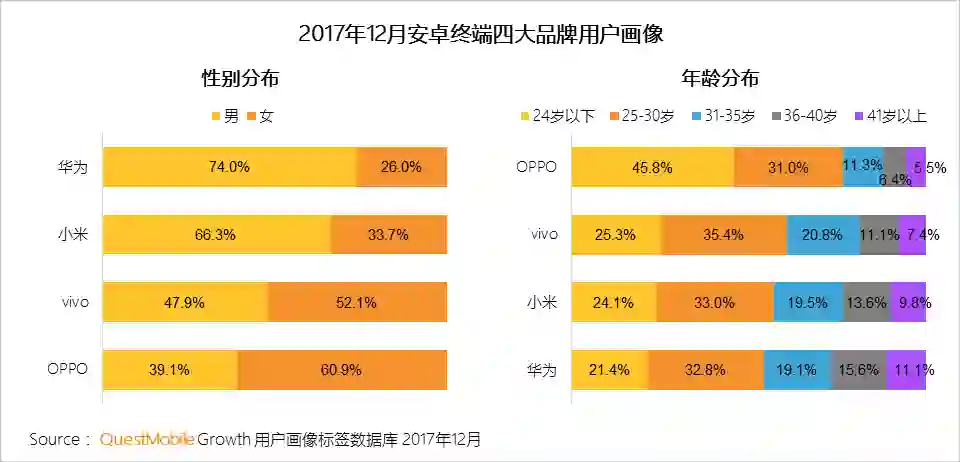 男性用户热衷华为/小米,女性用户青睐OPPO/vivo