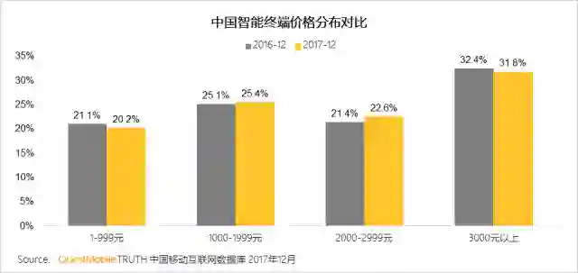 与之对比的则是1000元以下和3000元以上的终端占比均有所下降。