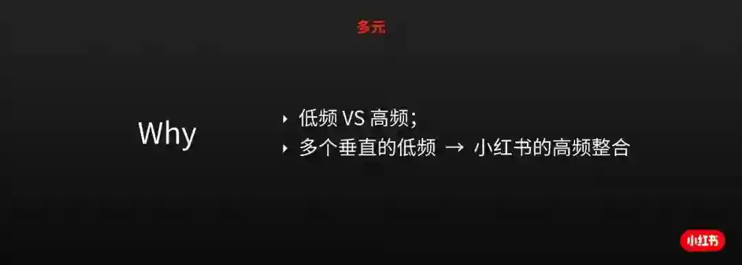 最后说一下第三个城市精神,多元。为什么多元重要,多元不仅仅在于表现形态上的多元,也体现在内容维度上的多元,有些日常需求本身就是高频的,而有些天生就是低频的,当我们把多个低频的需求很好的整合在一起的时候,用户对于小红书的认知心智就会有高频的绑定。我们希望这一座城市中的每一个居民说的每一句话,每一句声音都能被倾听,去中心化非常重要。我们也会去关心我们的基尼系数,去中心化是我们在为了达到每一句声音都能被倾听的目标去贯彻的。(中心化的流量分发在一些特定的场景下也是非常重要的。)我们在内容分发的时候也会考虑主题多样性和形态多样性,然后每一个内容会去考虑发布者端的价值和消费者端的价值。大家可以想像一下,在一个社区里面点出一个赞,用户点赞的时候并不仅仅是点出一个赞,而是另一边作者也会收到一个赞。这种关系是双向动态往前迭代的。