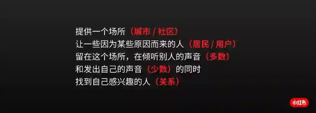 小红书是一个年轻人分享日常生活的社区,小红书也是一个年轻人居住生活的城市,我觉得这个再定义对我们来说是很适用的,也希望各位在互联网社区产品行业中的朋友们也可以尝试从城市的视角去重新定义自己的社区产品。