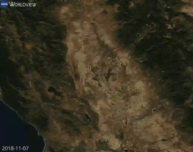 2018 年 11 月 9 日,NASA 旗下 Terra 卫星上的中分辨率成像光谱仪(Moderate Resolution Imaging Spectrometer,MODIS)拍摄了发生在萨克拉门托谷地 Camp Fire 的自然彩色图像。借助高分辨率快速刷新烟雾模型分析美国国家海洋和大气管理局(NOAA)和 NASA 卫星的数据,研究人员分析出烟雾还在继续向西扩散。
