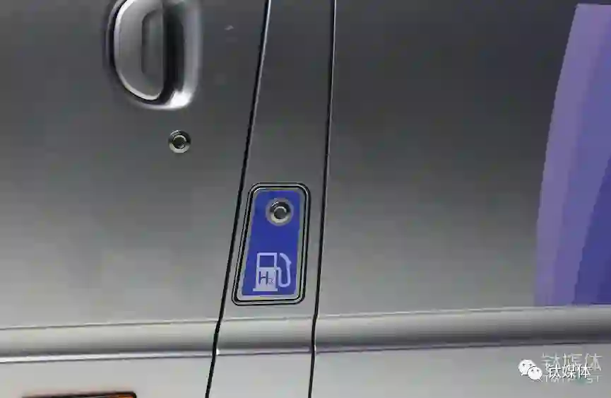 车辆前门处的加氢口,另一侧对称位置是充电口