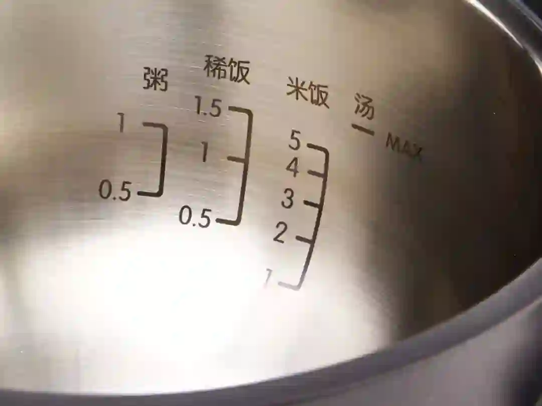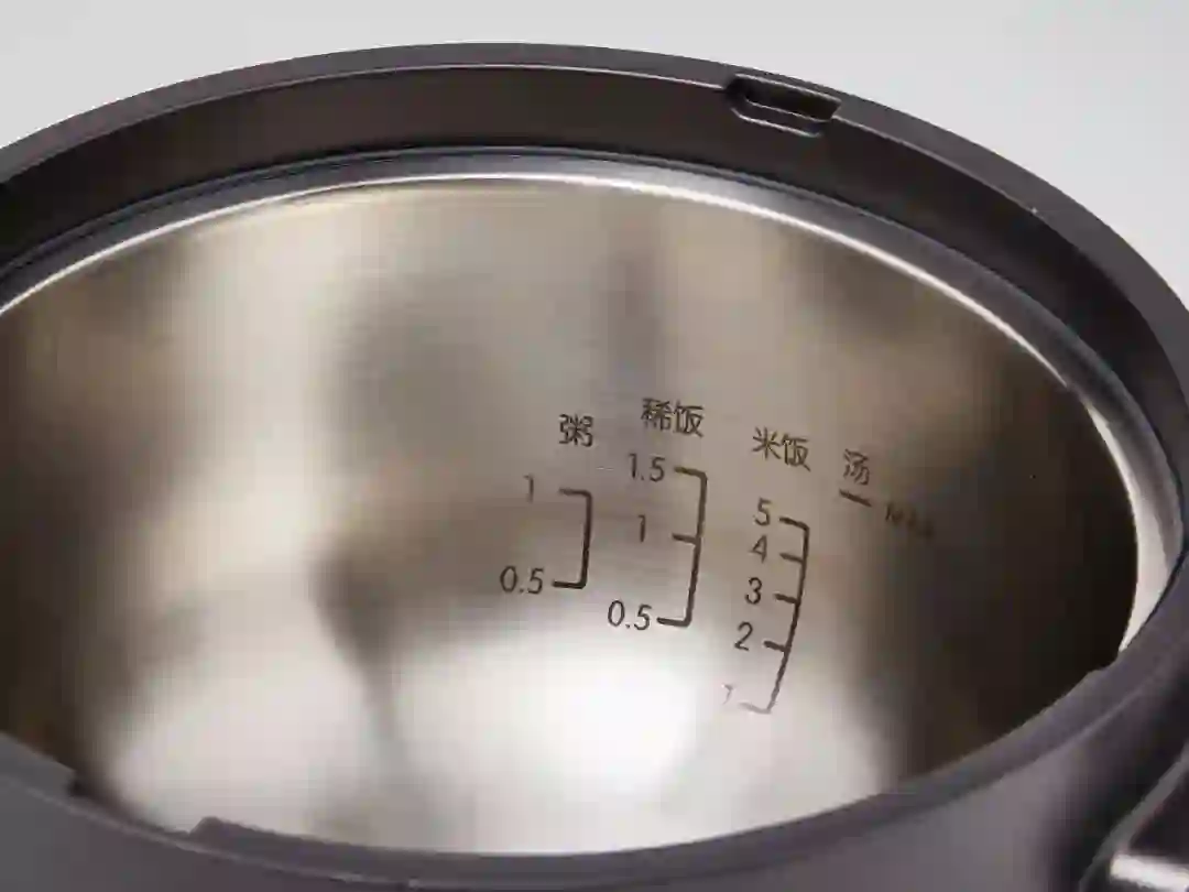 比如一量杯的米,就加水到刻度线1的位置。即使不知道米水比例的人,也能无脑操作,再也不用担心米饭蒸得太干或太湿。