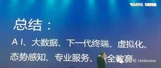 AI、大数据、下一代终端、虚拟化、态势感知……这些在其他安全企业发布会上经常提到的关键词,在瑞星的发布会上也屡屡被提及,为了证明自己在网络安全方面依然有过硬的本领,发布会现场还展示了评测机构和客户对自己的认可。