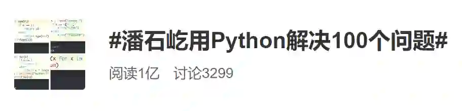 自从在微博上高调宣布要学习Python之后,潘石屹的微博基本上被Python学习的内容独揽了,他还专门建了一个#潘石屹用Python解决100个问题#的tag,目前这个Tag阅读量已经超过了一亿。
