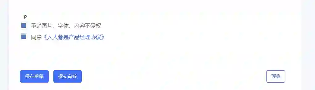 先审后发:所有内容审核通过后才可以提交,适用于对自身定位很强,对内容质量要求很高,信息量不是很大的平台,比如人人都是产品经理,以新闻为主的资讯平台,比如一点资讯等。优点是可以避免所有的违规,缺点是用户创作的环节和成本提高了,可能会劝退很多想试试的用户。