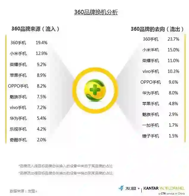 15、换机流向分析:和荣耀类似,从360品牌自身流入流出的比例约20%;与小米和荣耀的留转关系较为紧密